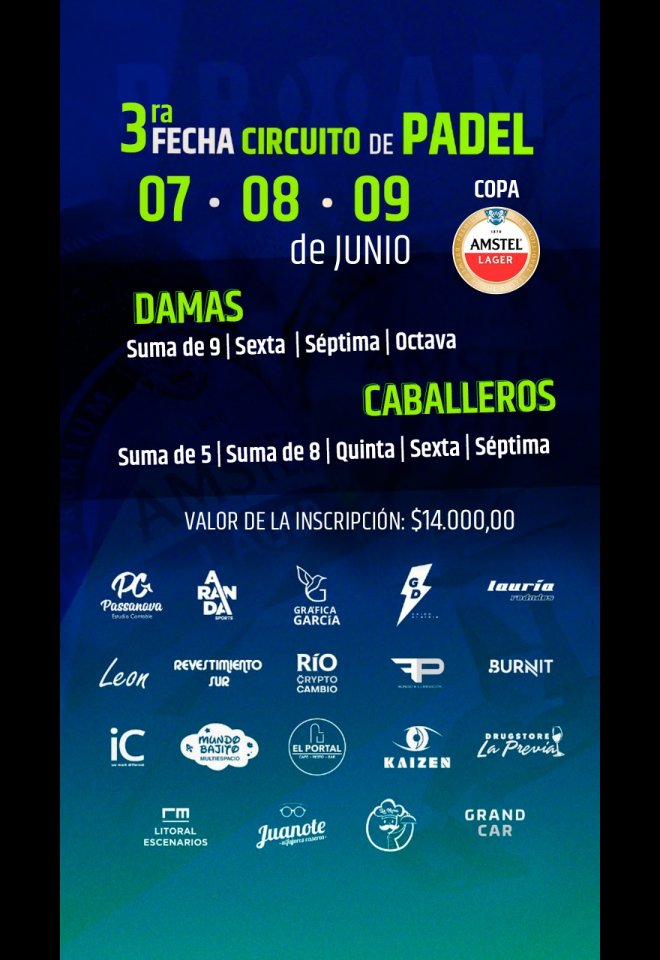 »» Evento: 3RA FECHA CIRCUITO PROAM - COPA AMSTEL »» Localidad: Concordia »» Fechas: 07/06/2024 al 09/06/2024