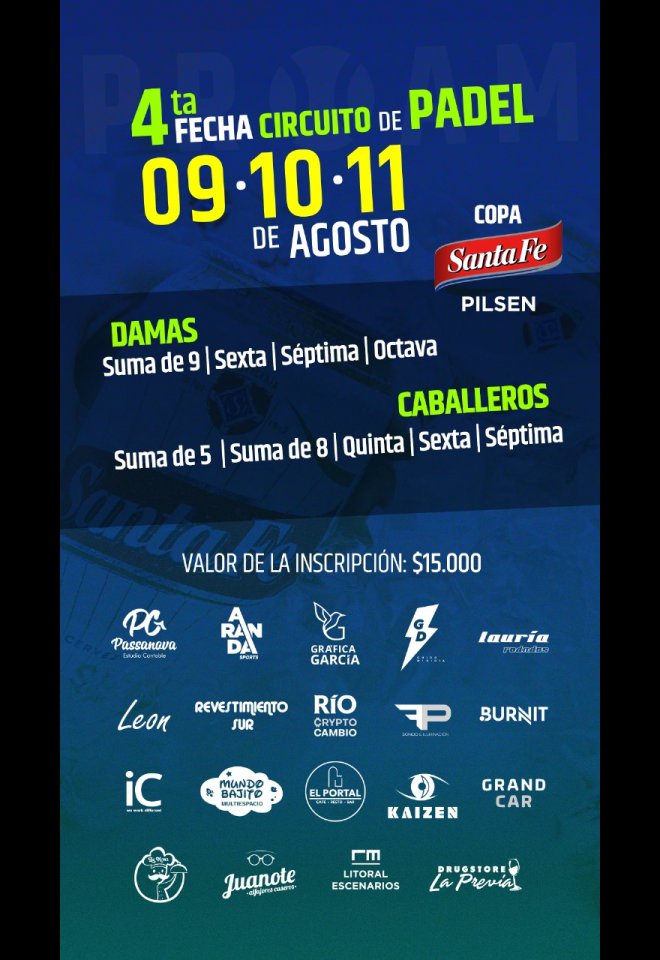 »» Evento: 4ta FECHA CIRCUITO PROAM - COPA SANTA FE PILSEN »» Localidad: Concordia »» Fechas: 09/08/2024 al 11/08/2024